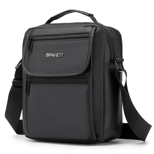 SPAHER Oxford Men's Shoulder Bag Ipad Messenger Business Bag Crossbody Satchel Sling Waterproof Travel Bag Handbag Kindle Tablet Case Daily Man Bag Gift with Adjustable Shoulder Strap, Vertical