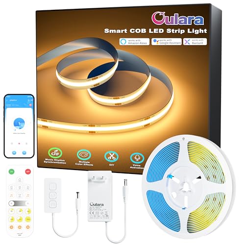 OULARA WIFI COB LED-remsa varmvit, kompatibel med Alexa, 6 m, 2 700 K, dimbar, 24 V, COB LED-slinga, ljusslinga, set, LED band för gör-det-själv-belysning under skåpet, sovrum, kök