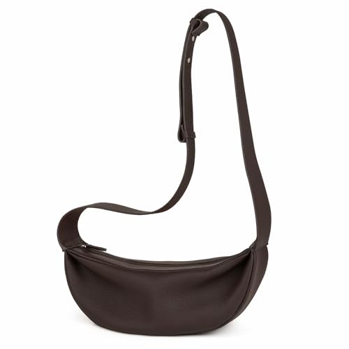 DONNAIN Halvmåne väska dam läder, snygg crossbody väska damer liten, crossbody bag för kvinnor med bred rem, axelväska kvinnor, liten axelväska äkta läder (Ny Kaffe)