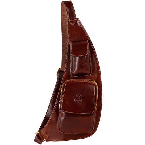 Time Resistance Läder Slingväska - Bröstväska - En Axelryggsäck - Korsväska - Axelväska - Italiensk Fullkornigt Läder Bröst Väska