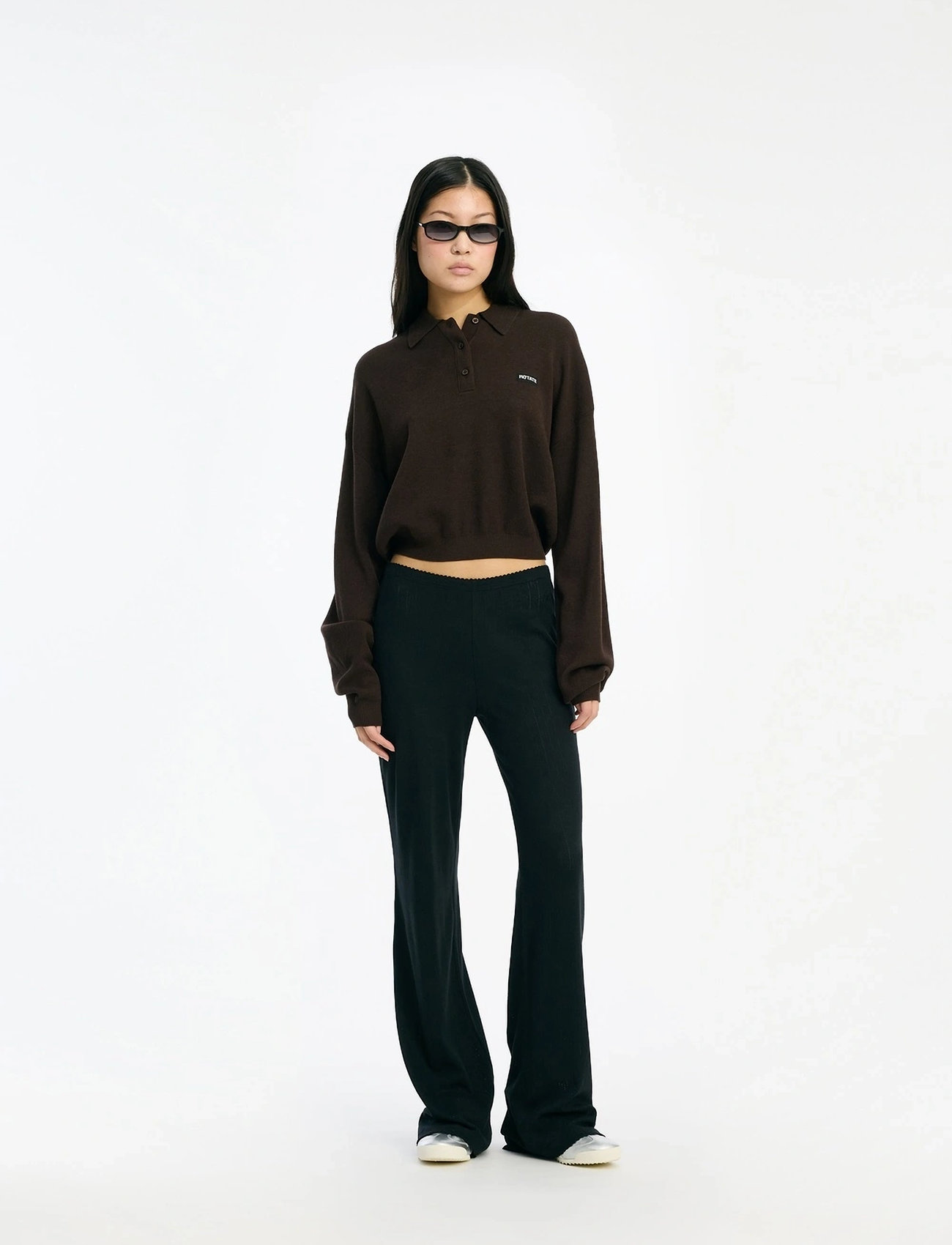 ROTATE Birger Christensen Slinky Knit Polo - Brown - XL