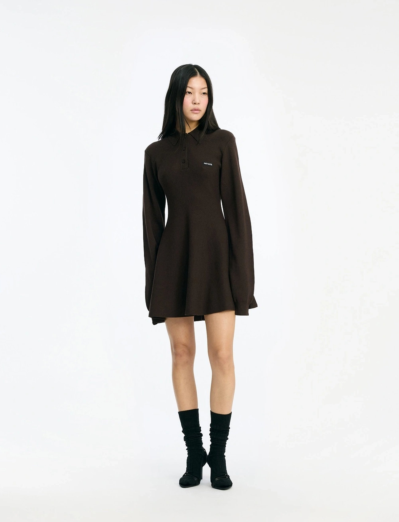 ROTATE Birger Christensen Slinky Knit Polo Dress - Brown - XS