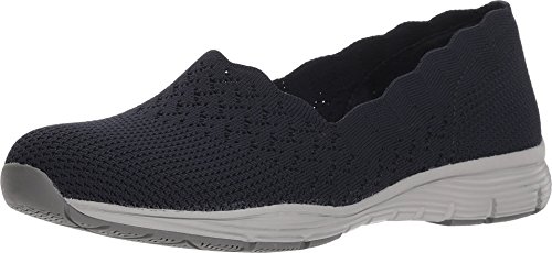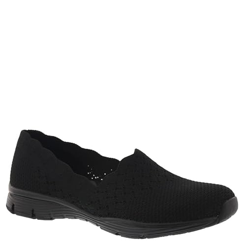 Skechers Women's Seager-STAT-Scalloped Collar, Engineered Skech-Knit Slip-On-Classic Fit Loafer, Black, 8.5 W US