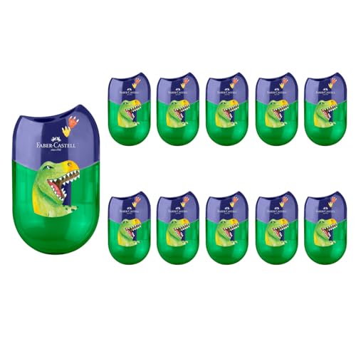 FABER-CASTELL 205247 – dubbel slipare dino, 10 slipare med hållare för tjocka och tunna pennor