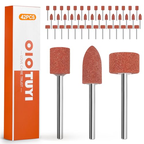 OioTuyi 42-delat slipspets-set, stenpoleringshuvud, sliptillbehör för borrmaskin och skruvdragare, träbearbetning, slipmus för avgradning och slipning