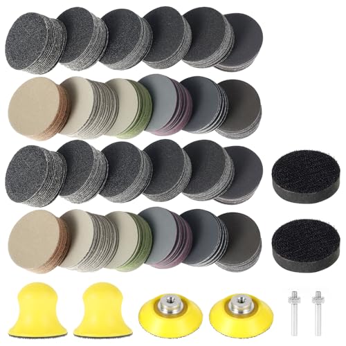 368 stycken slipskivor kuddar 50 mm vått torrt slippapper 50 mm kardborreband korn 60/80/100/150/240/400/800/1200/2000/3000/5000/10000 slipdynor runt kardborreband för trä metall
