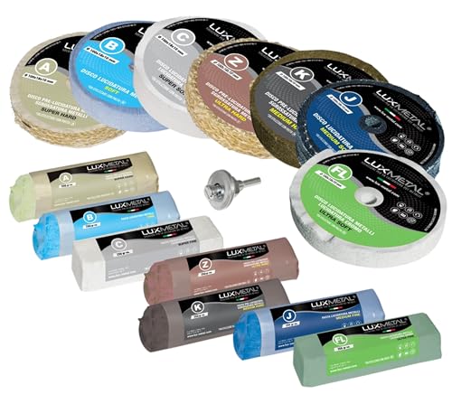 Lux Metal - Kit med 7 100 mm poleringsskiva och 7 slippasta 250 gr - Perfekt för polering på aluminium, järn, rostfritt stål polering av fast slippasta för metallpolering