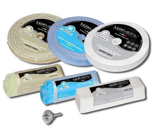 Lux Metal - Kit med 3 poleringsskivor på 150 mm och 3 slippasta på 250 g - perfekt för polering av metaller som aluminium, järn, rostfritt stål, mässing, koppar, guld, marmor