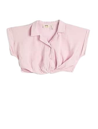 Koton Girls's Crop kortärmad krage detalj front slips modal tygblus, Rosa (286), 7-8 År