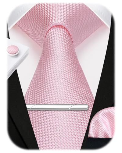 HISDERN Set med rutigt slips och ficknäsduk för män, manschettknapp, slipsnål, formell bröllopsfest, gåvor, slips för män, Rosa-3, en storlek
