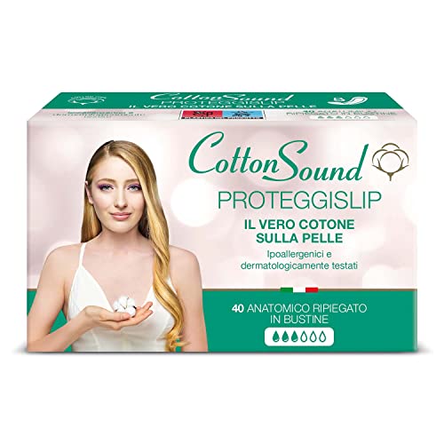 COTTON SOUND Slipskydd med bomull 40 stycken, 100% Hydrofil bomull, anatomisk vikta i påsar, Allergivänliga, dermatologiskt testad, Maximal absorption, Tillverkad i Italien