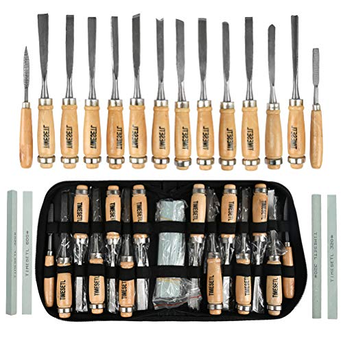 TIMESETL mejselset med 14 stycken håljärn, stickomslagssats, träsnideri, handmejsel, verktyg, träbearbetning, set med 4 st. slipstenar och väska, för proffs och nybörjare, gör-det-själv, trähantverk