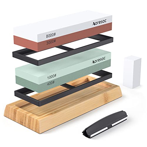 Aoresac slipsten knivset med bambas fast slipsten och slipledning, 400/1000 3 000/8 000 dubbelsidiga slipstenar