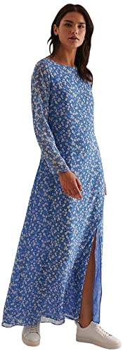 NA-KD långärmad slits klänning för kvinnor vardaglig, Blå blomma, 32 SE