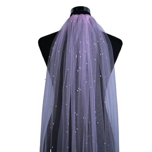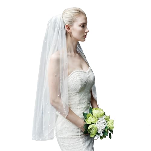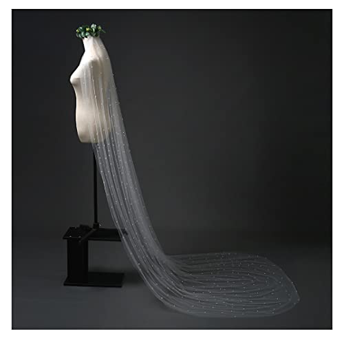HekouJiub Slöja brud långa pärlor bröllop brudslöja vit enkel tyll bröllopsslöja pärlor slöja med kam drömbröllop brud kostym damer pärla brudslöja för bröllop, Vit, En storlek