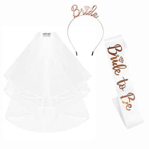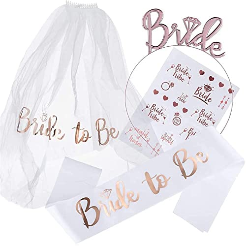 AIBAOBAO Brud att vara skärp möhippa festtillbehör inkluderar brud pannband tiara, slöja med kam, band, tatueringar, blivande brud gåvor dekorationer för bröllop möhippa möhippa dekoration