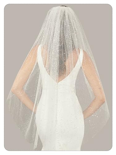 YAEISM Brud bröllopsslöja vit glitter katedral slöja glittrande ungkarl slöja fingertopp brud lång stjärna ljus tyll slöjor med metallkam för brudar och kvinnor, vit glitter, lång, Vit glitter, Long