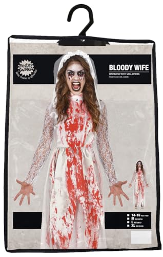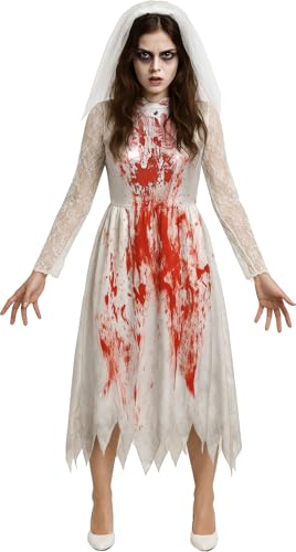 FIESTAS GUIRCA Blodig skräck bruddräkt för kvinnor - mördare brud inkluderar blodig och slöja brudklänning - halloweendräkter för kvinnor, tonåring storlek 14–16 år