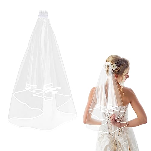 Amaxiu Kort bröllop brudslöja med kam, 2 nivåer tyll brud slöja armbågslängd bröllop slöja bandkant 60–80 cm (23–31 tum)
