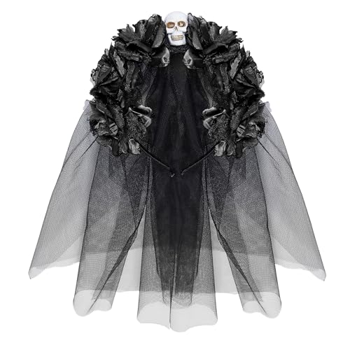 WIDMANN - Halsband med svarta rosor och slöja, Dia de los Muertos, Dead's Day, skelett brud