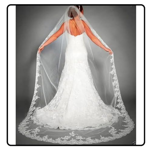 Ursumy Brud bröllop spets slöjor lång katedral slöja mjuk tyll brudslöjor med kam 299 cm (vit)