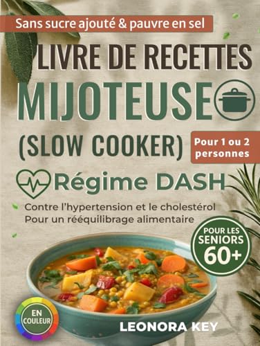 Livre de recettes mijoteuse (slow cooker) pour les seniors 60+: régime DASH contre l’hypertension et le cholestérol, sans sucre ajouté, pauvre en sel, rééquilibrage alimentaire pour 1 ou 2 personnes