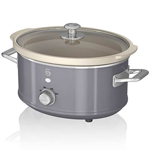 Swan Retro SF17021GRNY Slow Cooker 3,5 l avtagbar kokbehållare, PFOA- och PTFE-fri keramisk non-stick-behållare, 3 temperaturnivåer, glaslock, vintage-design, grå, 200 W
