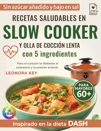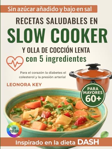 Recetas saludables en slow cooker y olla de cocción lenta con 5 ingredientes: Bajas en sal y azúcar, para cuidar el corazón, la diabetes, el colesterol y la presión arterial, para uno o dos adultos