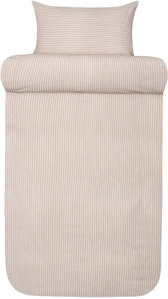Vävd krepp sängkläder 140x200 cm - 100% mjuk bomull - Brun med ränder - Kreppsängkläder sänglinne - Slumre Høie Of Scandinavia