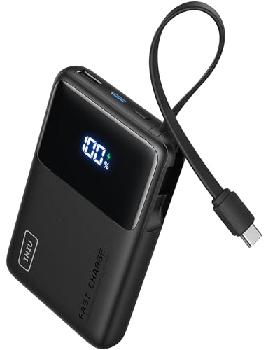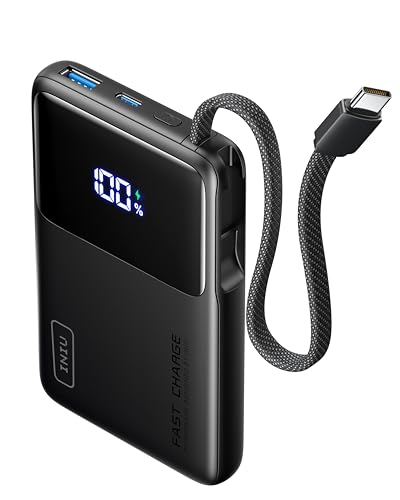INIU Power bank, smal powerbank 10 000 mAh 20 W PD med integrerad USB-C-kabel, höghastighets bärbar laddare USB C In&Out, batteripack för iPhone 16 15 14 13 Samsung S23 S22 Google och mer