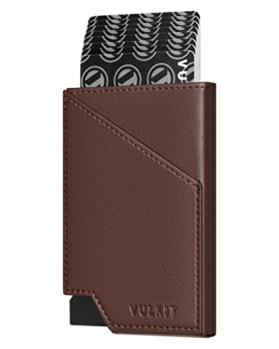 VULKIT Kreditkortshållare Plånbok RFID Blockerande Smal Aluminium Metall Bank Pop-up Korthållare Fodral med Business Money Ficka för kreditkort Sedlar och Mynt (Mörkbrun)