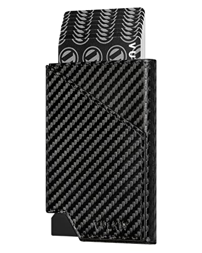 VULKIT Kreditkortshållare Plånbok RFID Blockerande Smal Aluminium Metall Bank Pop-up Korthållare Fodral med Business Money Ficka för kreditkort Sedlar och Mynt (Svart)