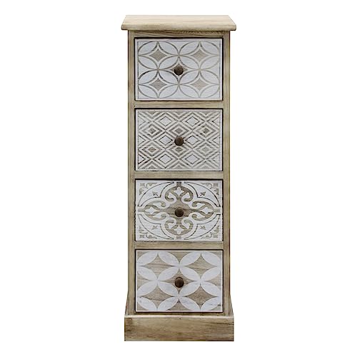 Rebecca Mobili Liten byrå, smal organisatör 4 lådor, vitbeige trä, vintagestil, heminredning - Mått: 80,5 x 29 x 25 cm (HxBxD) - Art. RE6536