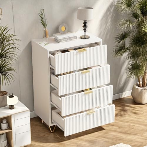 Julyue Byrå vit med 4 lådor, sovrum byrå träbyrå skåp för hall, lådskåp kök 60 cm bred, byrå liten smal