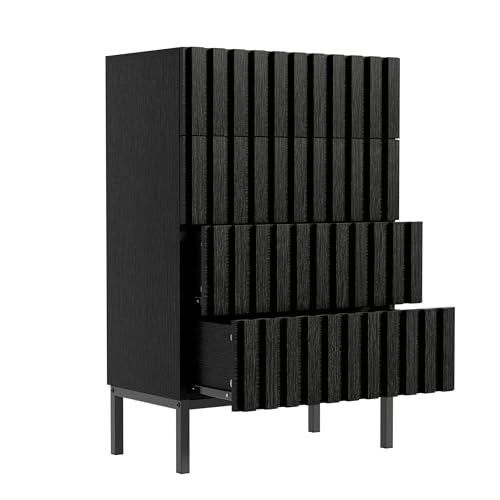 UEV Byrå med förvaringslådor, 60 x 34,5 x 92 cm, skåp med 4 lådor, smal byrå, förvaringsmode, skåp för vardagsrum, sovrum, hall (svart)