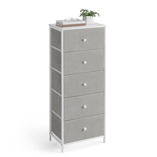 SONGMICS Byrå sovrum, låda förvaringsenhet, byrå med 5 tyglådor, metallram, hög och smal, för garderob, duvgrå och gräddvit LTS315G01