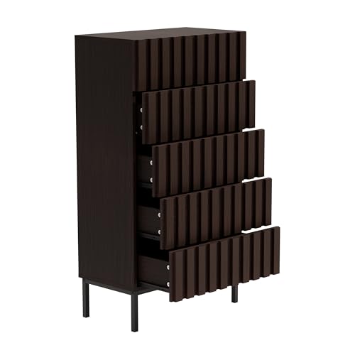 UEV Byrå med 5 förvaringslådor, 60 x 34 x 110 cm, förvaringsommode, modernt skåp, highboard, skänk med lådor, smal byrå, skåp för vardagsrum sovrum, hall (brun)