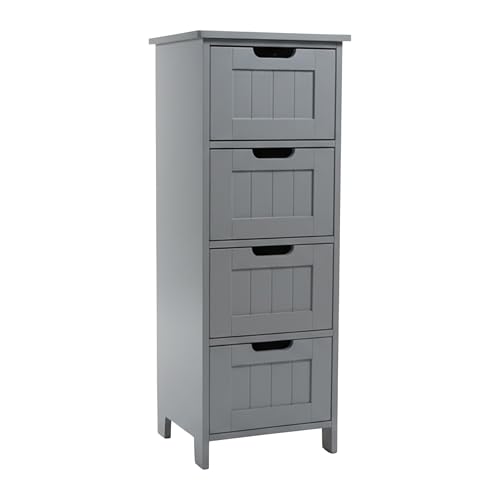 Relaxdays badrumsskåp med 4 lådor, MDF, smal förvaring, 82 x 30 x 30 cm, vit