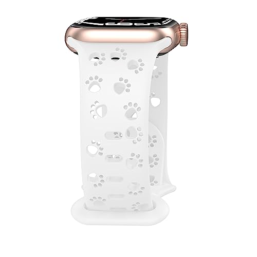 Dog Paw Apple Watch Band berlocker kompatibla med Apple Watch Band 38 mm 40 mm 44 mm 42 mm 45 mm 41 mm 49 mm för kvinnor, smal spets silikon ihåliga armband för iWatch serie 8/7/6/5/4/3/2/1/SE,