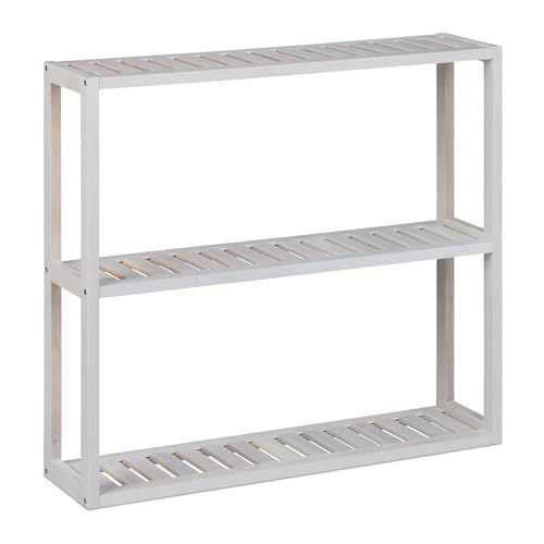 Relaxdays Vägghylla valnöt, 3 hyllor, HBT: 54 x 60 x 15 cm, smal trähylla badrum, kök, stående & hängande hylla, vit