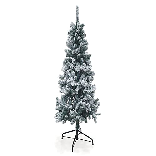 2,1 m smal julgran konstgjord snö flockad frostad penna träd 625 spetsiga spetsar, metallstativ, semester heminredning
