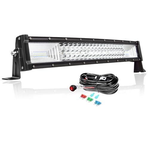 PICAA Böjd smal LED-stång, 4 x 4, 22 tum, 270 W, med 12 V kabelsats, tredubbla rader Combo LED-ljusstång vattentät lampa för bil lastbil off road ATV SUV traktor
