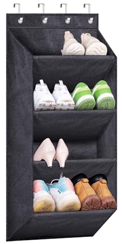 Sovande lampa över dörren skohylla för garderob, kort hängande skoorganisatör med stora djupa fickor, smal dörr sneaker förvaring för stövlar i husbil, sovsal, svart