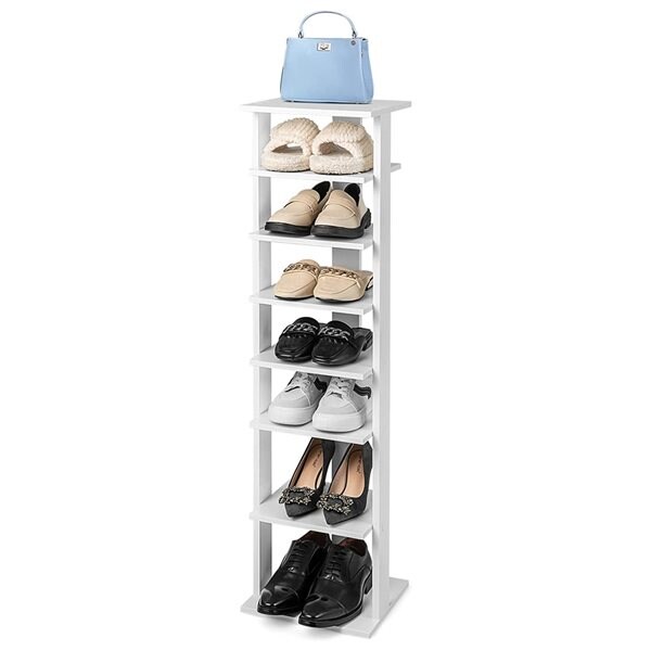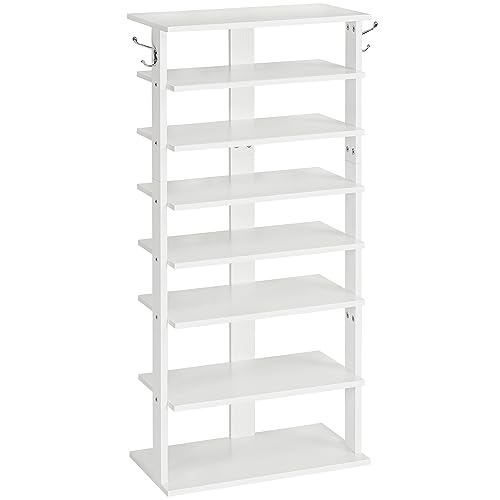 Smal skohylla med 7 hyllplan och krokar – Vit