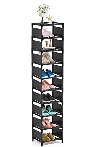 sunvito Skohylla, 10 nivåer, platsbesparande, 10 par höga skor, organiserare, skohyllor, smal skohylla (Svart)