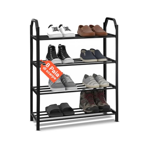 Ywinler Skoställ med 4 nivåer, metallskoförvaring, smala skoställ för litet utrymme, stapelbar, smal skohylla för hall, entré, vardagsrum, svart