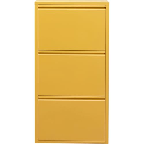 Kare Design Skoskåp, Caruso gul, metall, med 3 flikar, skoförvaring för 6 par skor, smal, utrymmesbesparande, hög, skohylla, entré, 103 x 50 x 15 cm (H/B/T)