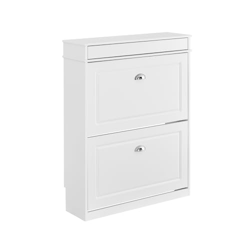 Skoskåp med 2 flip-lådor, vit räfflad skoförvaring för entré, dold smal skoförvaring skohylla fristående för hall, entré, vardagsrum (SHBS)