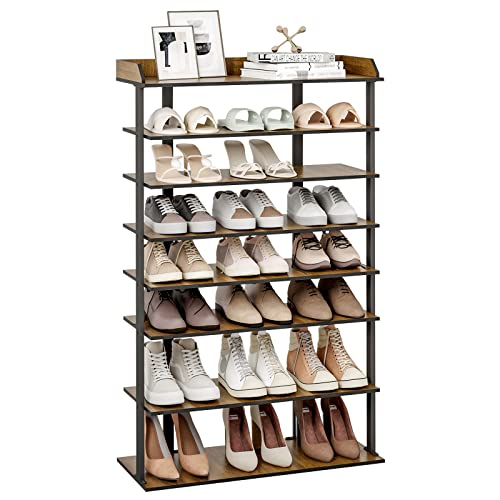 HOOBRO Högt smalt skoställ, 8 nivåer vertikalt ställ, hörnhylla för litet utrymme, smal skoförvaring, hög skohylla för garderob, entré, hall, sovrum, rustik brun och svart EBF22XJ01