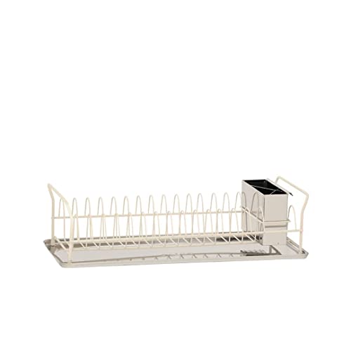 PLINT Premium Dish Rack - Plate Drying Rack with Cutlery Holder & Drip Tray Stainless Steel Draining Dish Rack drainer - Dish Draining Rack for Kitchen Counter - Small Dish Drainer Cream Color